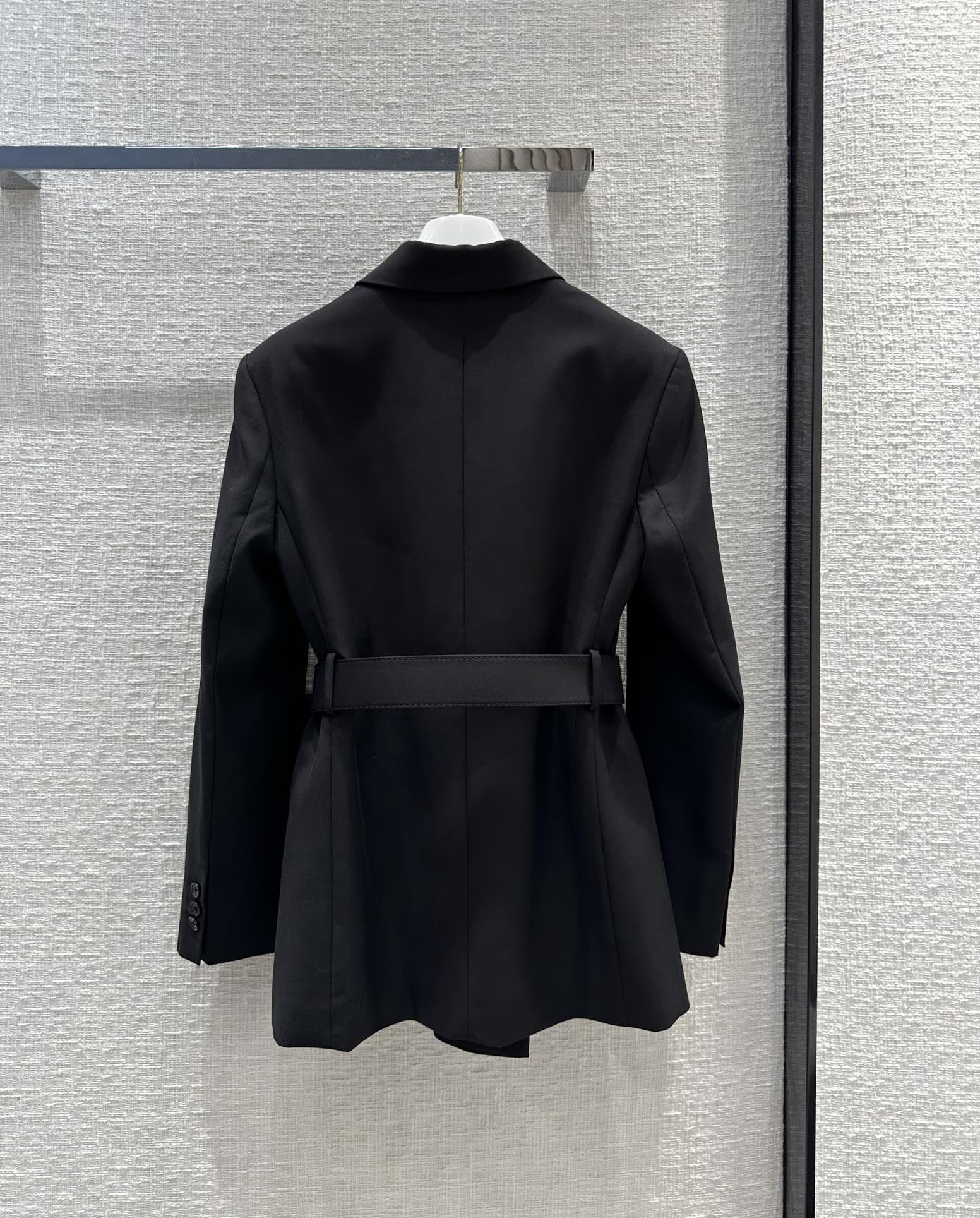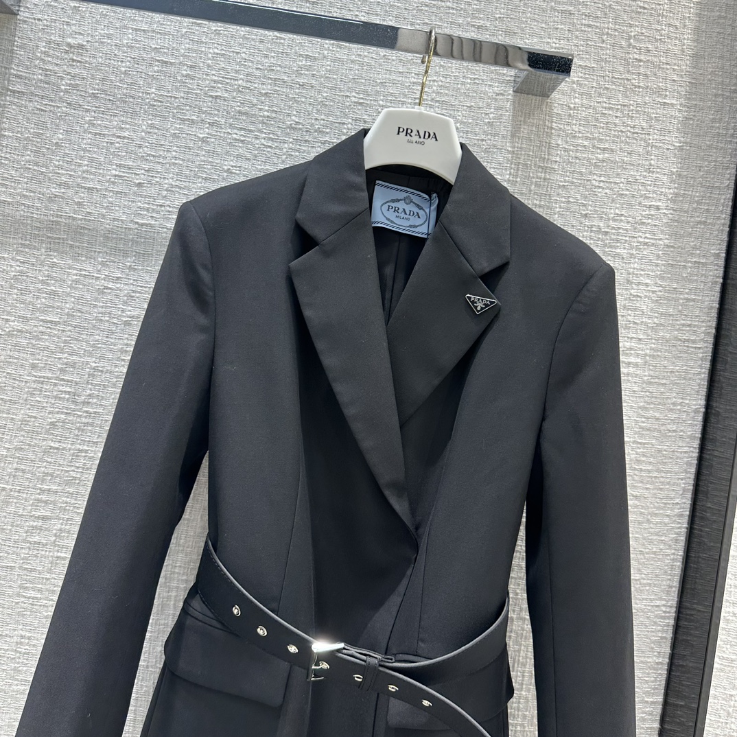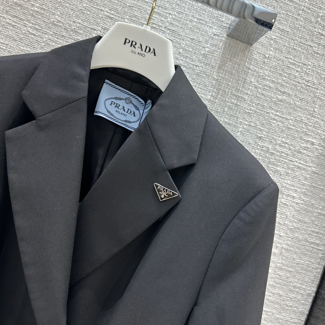 Prad*23 early autumn new product! Belted side button blazer! It can be sweet and salty, and the temperament is A and sassy! Triangular logo brooch embellishment is full of fashion sense! Imported fabric texture is superb! The corn belt has a waist-tight version with a capable temperament! The upper body looks thin and tall! The quality of perfect workmanship depends on the details, and the one-color SML spot is available for grabs. S size, shoulder width 41, bust 94, length 69, each size has a bust difference of 4, shoulder width and length difference of 1.