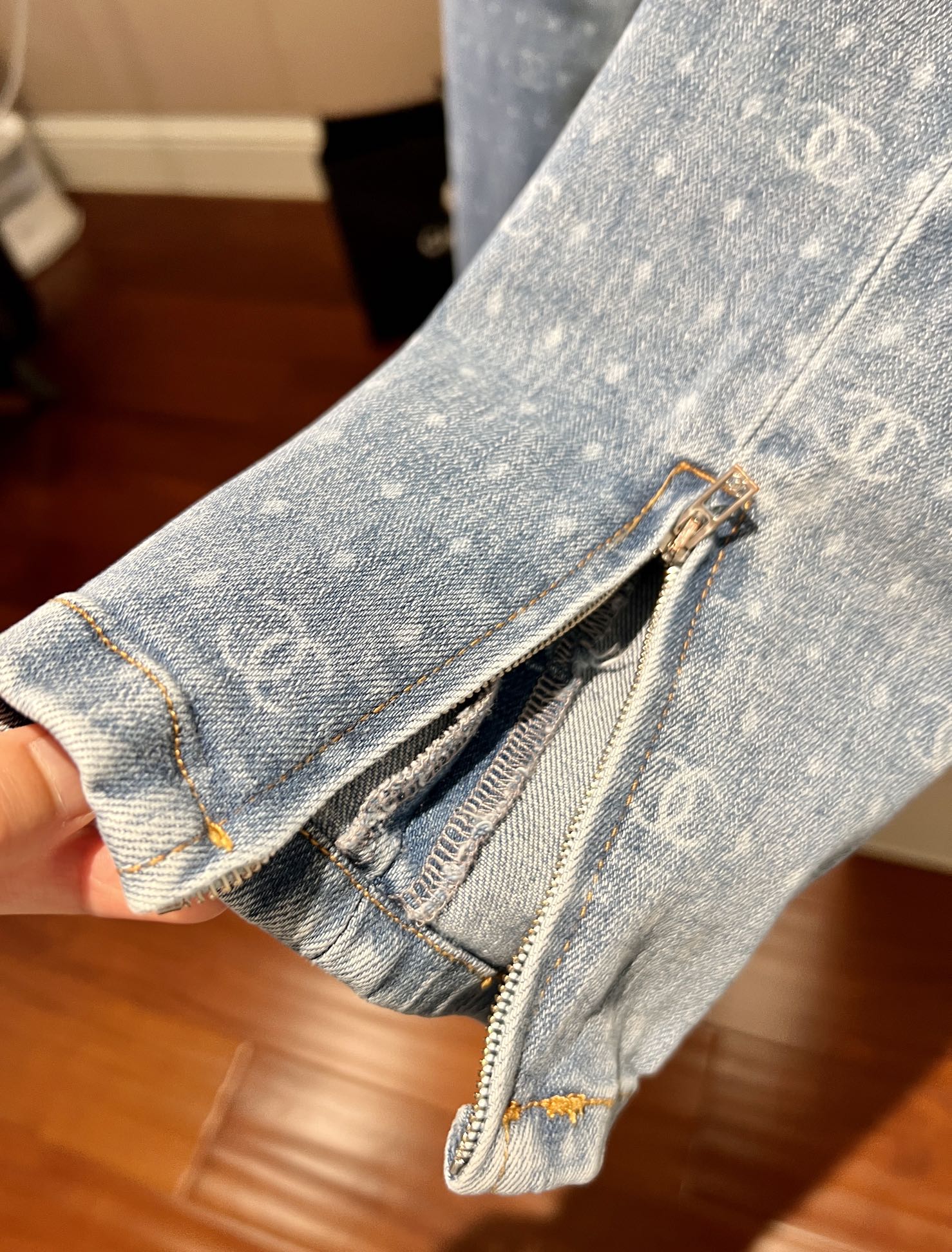 🍃,🆕Chane* new jeans, the trousers are designed to be super slim and comfortable, the denim fabric is crisp and stylish, and the details are well processed. Size: 36\/38\/40