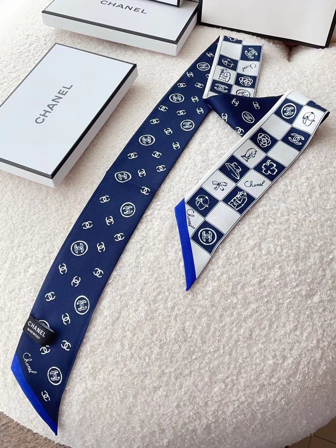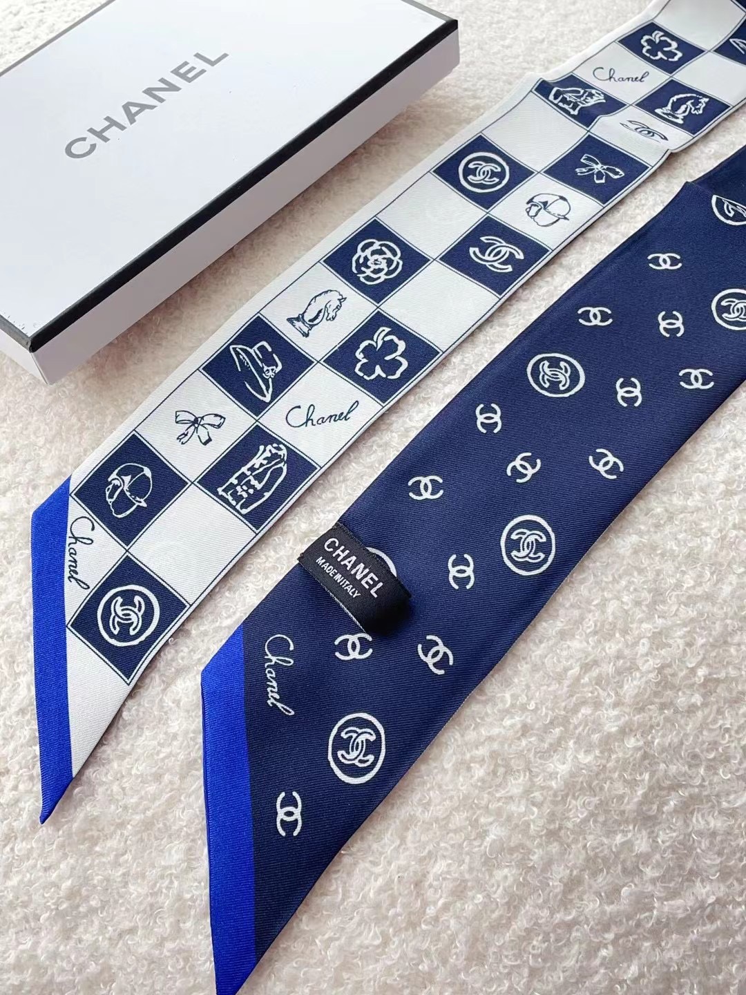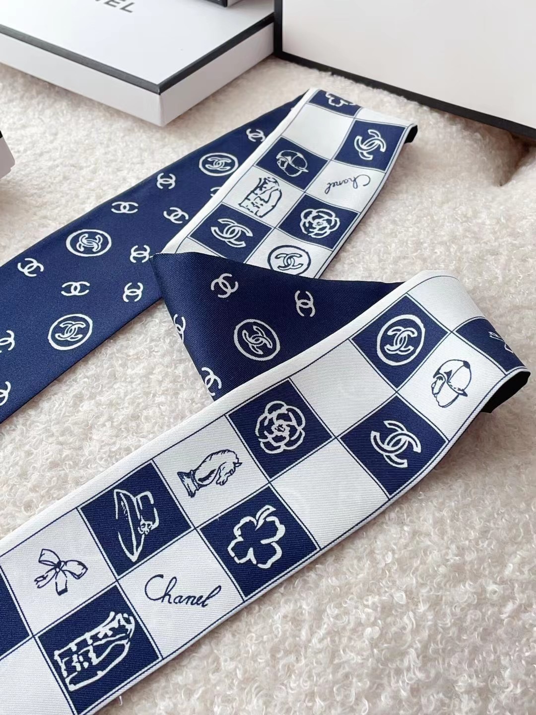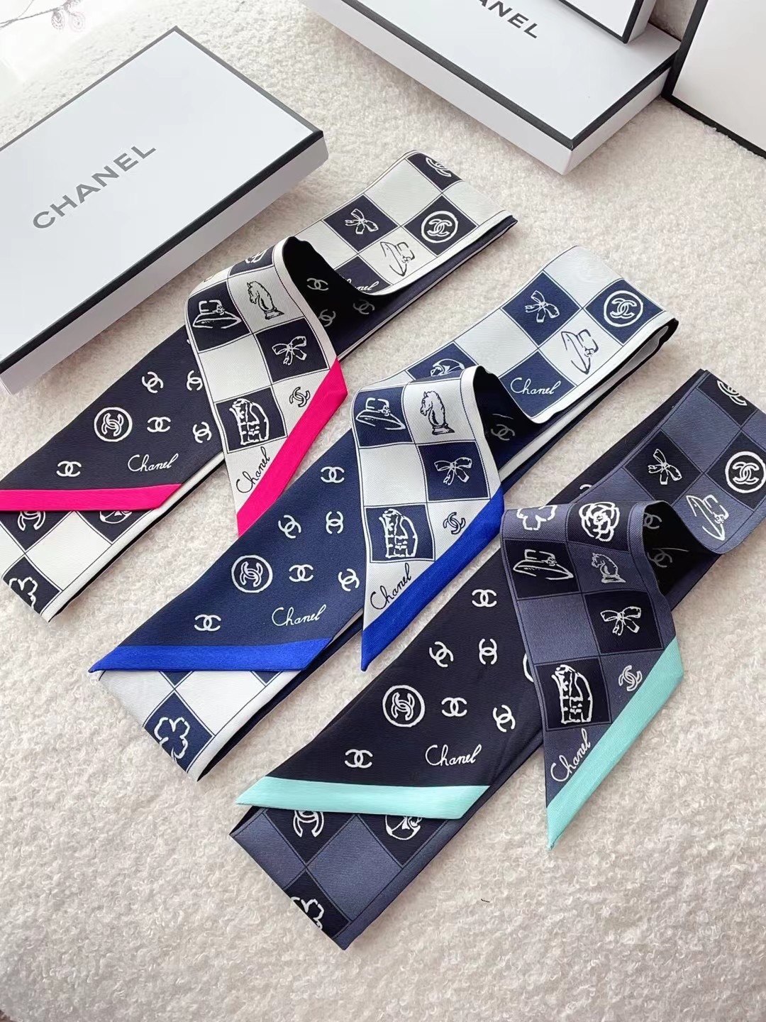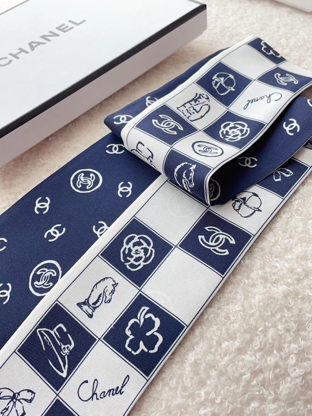 ✨✨The latest Xiaohongshu, the same style at the counter! Chanel headband/ribbon style! Can be used as a small scarf, tied to hair, tied to a handbag, tied to the wrist for decoration! Multifunctional, whatever you want to match! Double-sided twill silk! Specification 6*120!