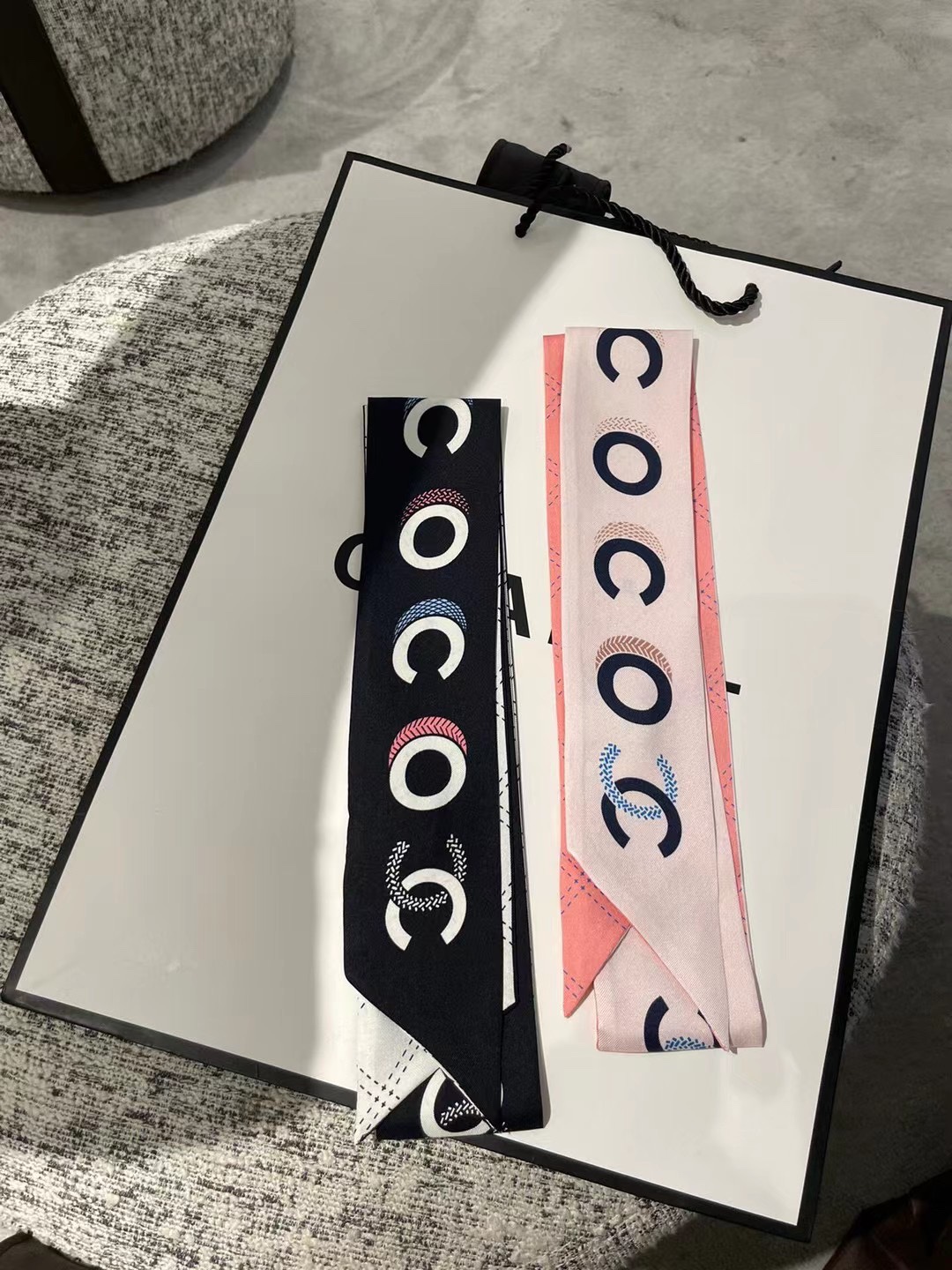 The same style from the latest counter! Chanel headband/ribbon style! Can be used as a small scarf, tied to hair, tied to a handbag, tied to the wrist for decoration! Multifunctional, whatever you want to match! Double-sided twill silk! Specification 5*120 two colors