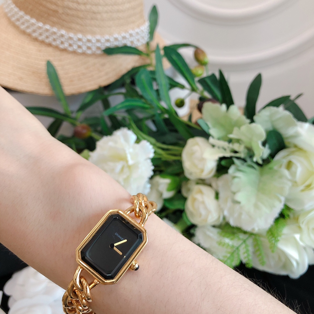 Ch@nel Première Vintage 1987 Medieval Sugar Cube Watch A product of Chanel’s most classic period, it plays a decisive role! Time has not diluted her beauty. In her years, she has added a touch of charm, a high-class, calm, salty or sweet French feeling! For Vintage fans, this watch must be on your shopping list! Chanel herself hated being restrained, so she removed the scales and left only the hands! The shape and chain design of the watch adopt the octagonal case of Place Vendôme in Paris, which is consistent with the design concept of the classic No. 5 perfume cap! A style that every medieval player should have! Comes with Zp box! Metal chain model KD700 Black leather model KD980