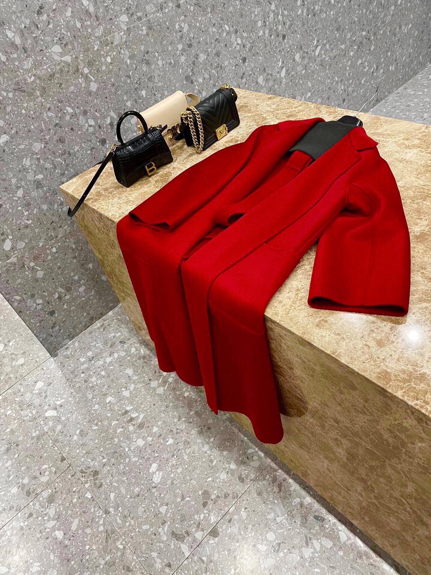 From China MaxMara Clothing Coats & Jackets Red Sewing Epi Cashmere Winter Collection
