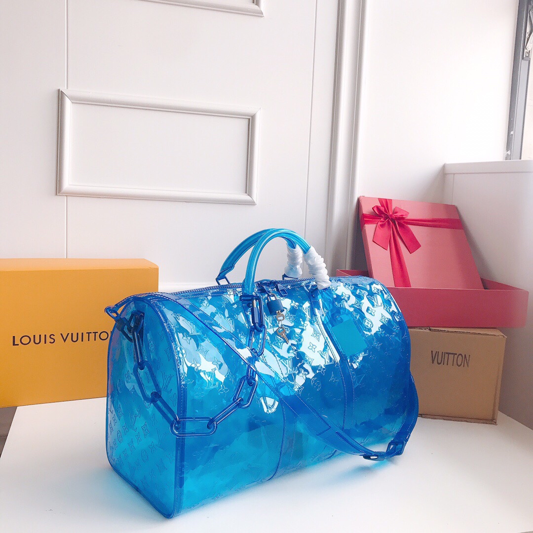 M53271KEEPALL 50 travel bag (with shoulder strap) This colorful KEEPALL 50 travel bag shows the forward-looking vision of menswear artistic director Virgil Abloh: the collision of personal youthful vitality and the classic elegance of Louis Vuitton. Intertwined. Monogram printed PVC material, large size design, with bold rainbow colors, very eye-catching.