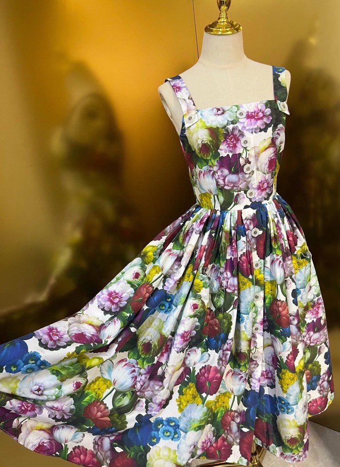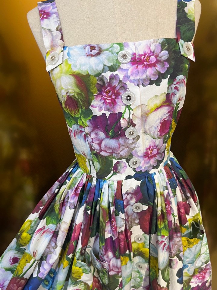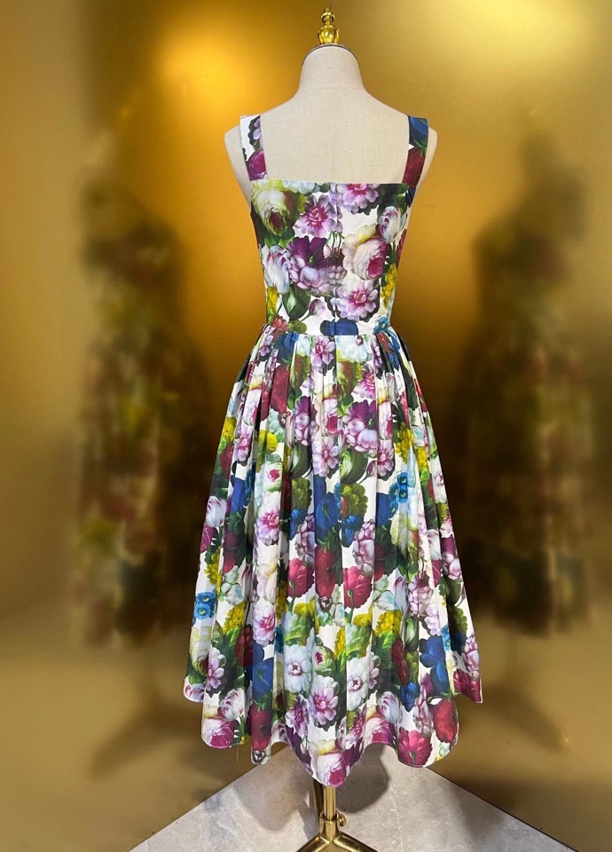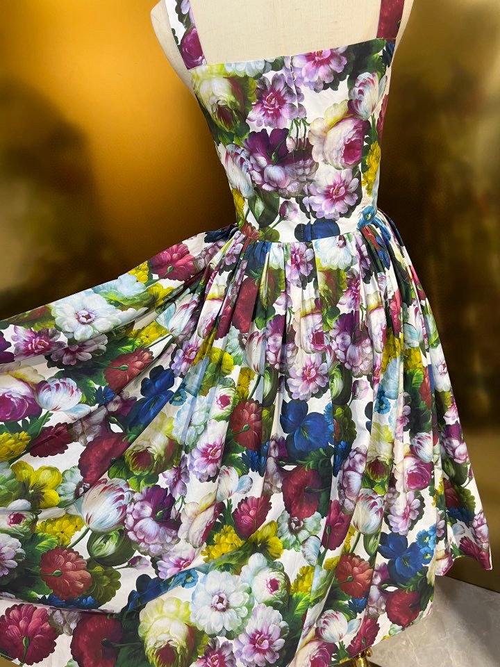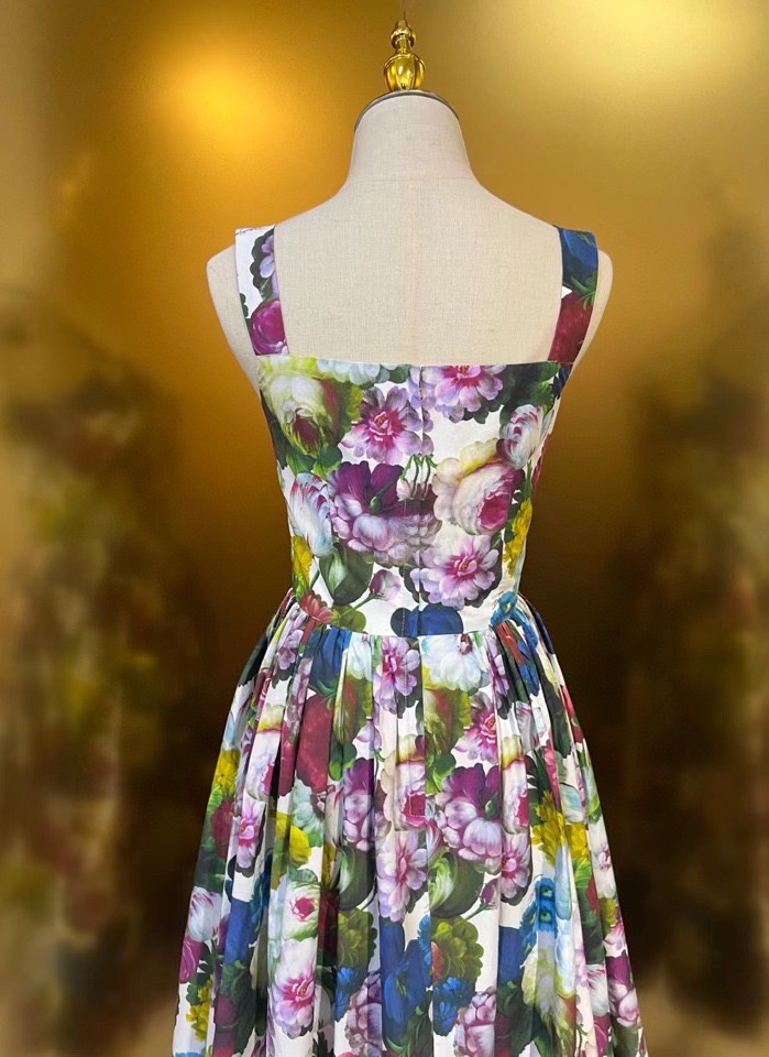 💐Dolce & Gabbana Original Purple and White Floral Cotton Print Customized Button Waist Suspender Swing Dress 20242900 Ready in Stock smlxlxxl💕