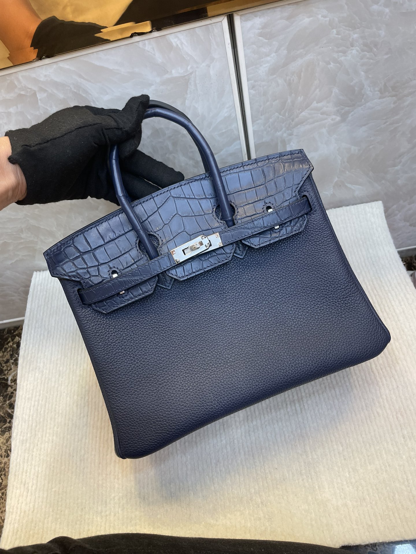 Factory off-season funds withdrawn, special price 💰2900 birkin25 midnight blue with matte Nile crocodile handmade wax thread
